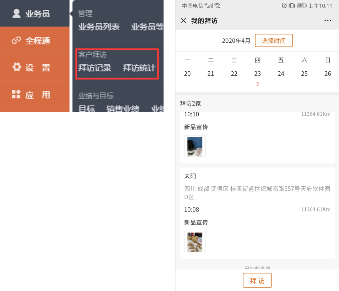 4、新增業(yè)務(wù)員拜訪功能