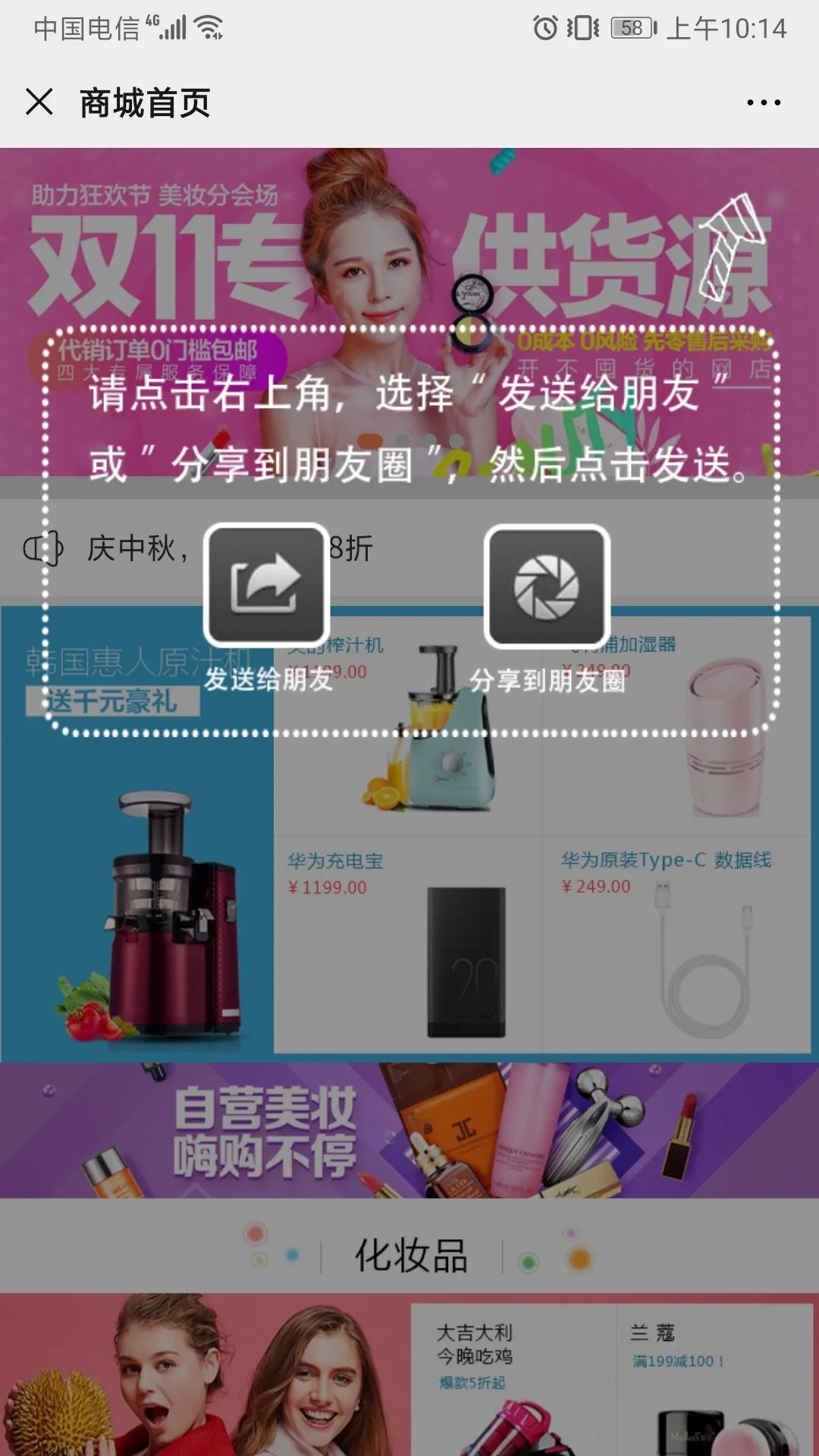 業(yè)務(wù)員或管li員移動(dòng)端可查看商城首頁(yè),并分享推薦給其他人。