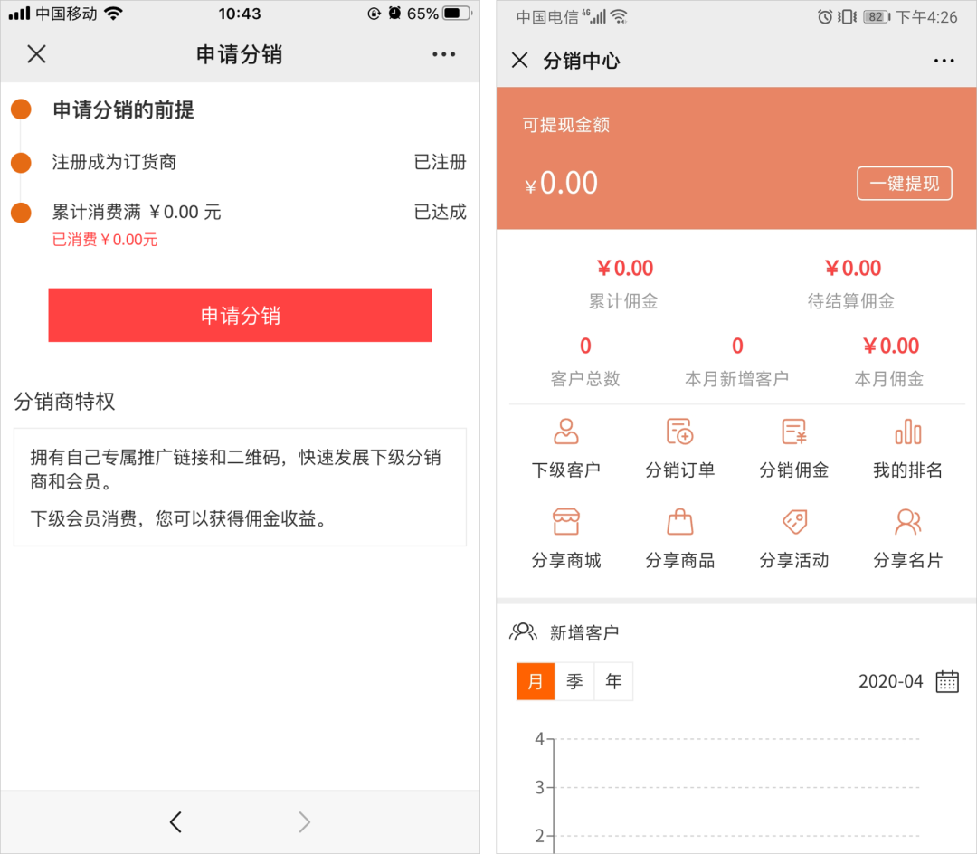 客戶需要申請(qǐng)成為分銷商,才能獲得分銷權(quán)限。擁有分銷權(quán)限以后,就可實(shí)時(shí)查看自己的分銷數(shù)據(jù)。