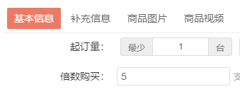 對(duì)基礎(chǔ)單位支持設(shè)置按數(shù)量倍數(shù)購(gòu)買,比如設(shè)置為5以后,客戶購(gòu)買該款商品加入購(gòu)物車時(shí)以5、10、15……添加。