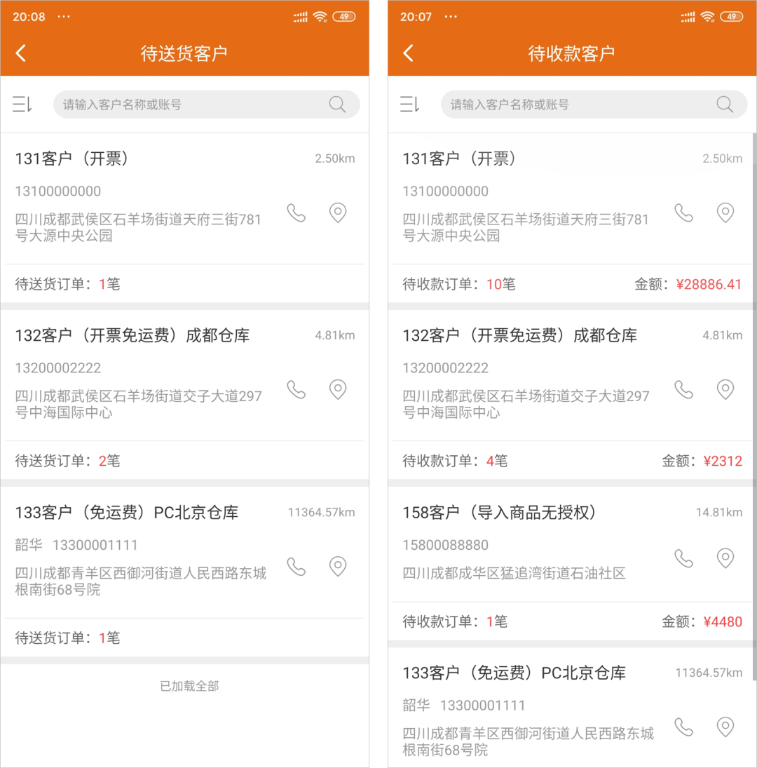 業(yè)務(wù)員送貨及收款列表頁(yè)優(yōu)化后,可以更直觀了解每個(gè)客戶需要送貨及收款的情況。