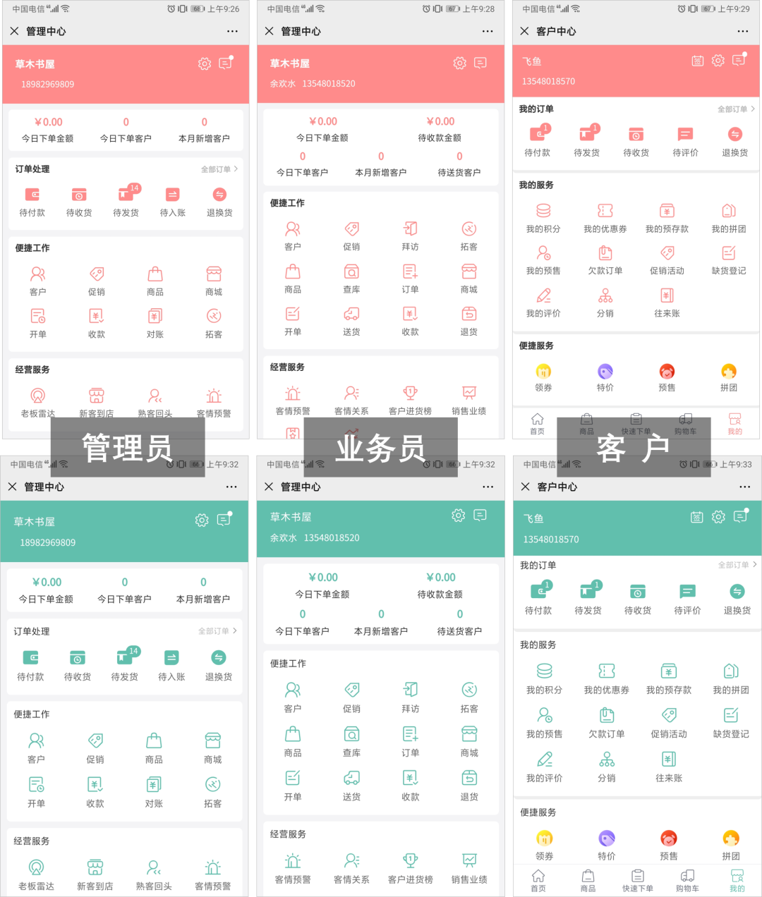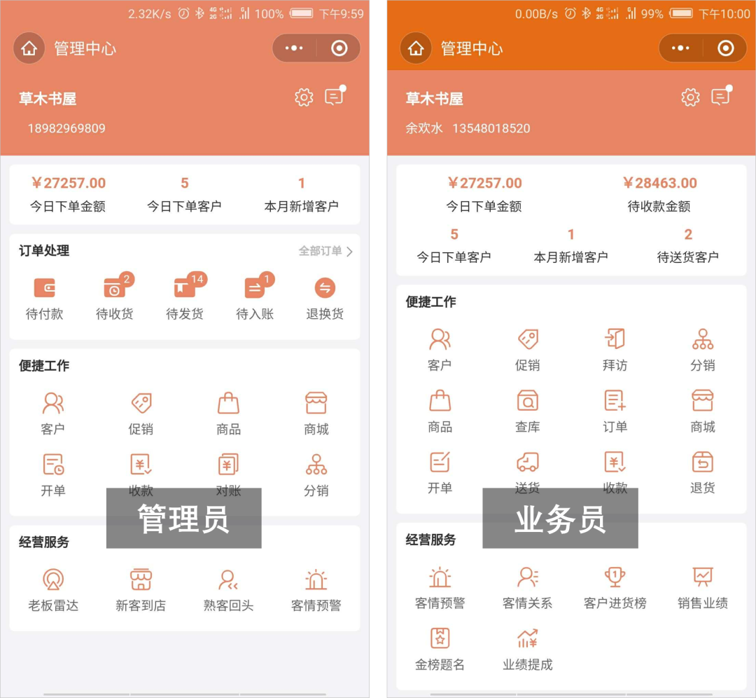du立小程序版,除了以前的訂貨端,現(xiàn)在管li員、業(yè)務(wù)員也可以使用小程序來(lái)進(jìn)行業(yè)務(wù)管理跟進(jìn)了。
