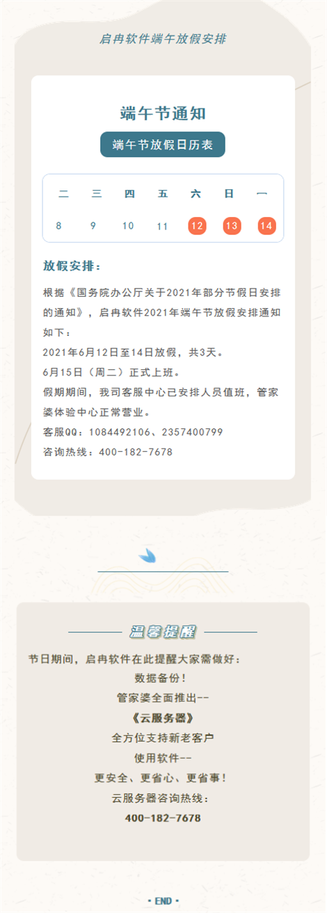 【啟冉軟件】公告 | 端午節(jié)放假通知