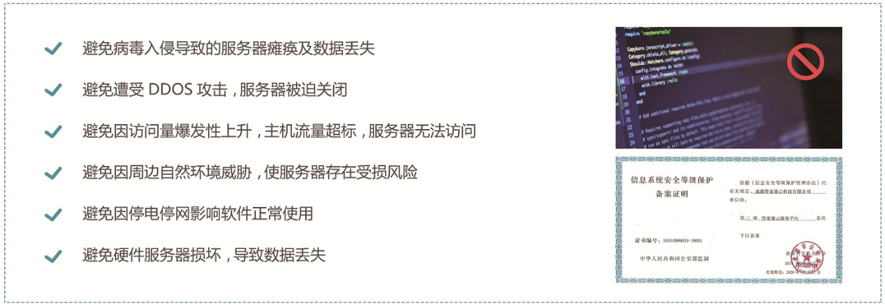 使用管家婆云,再也不用擔(dān)憂企業(yè)數(shù)據(jù)安全問題,管家婆云已獲得公安部頒發(fā)的“信息安全等級保護(hù)”三級等保證書,非銀行金融機(jī)構(gòu)的最高級認(rèn)證!