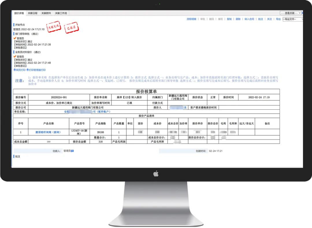 同時,以流程記錄為中心,用工作流搭建規(guī)范高效的審批機(jī)制,報價員可以通過工作流來完成報價,減少銷售等待時間和出錯率,提高企業(yè)人員工作效率,空余出較多的時間。還可通過客戶的各項數(shù)據(jù)來審查利潤,并為客戶提供專業(yè)的流程體驗。