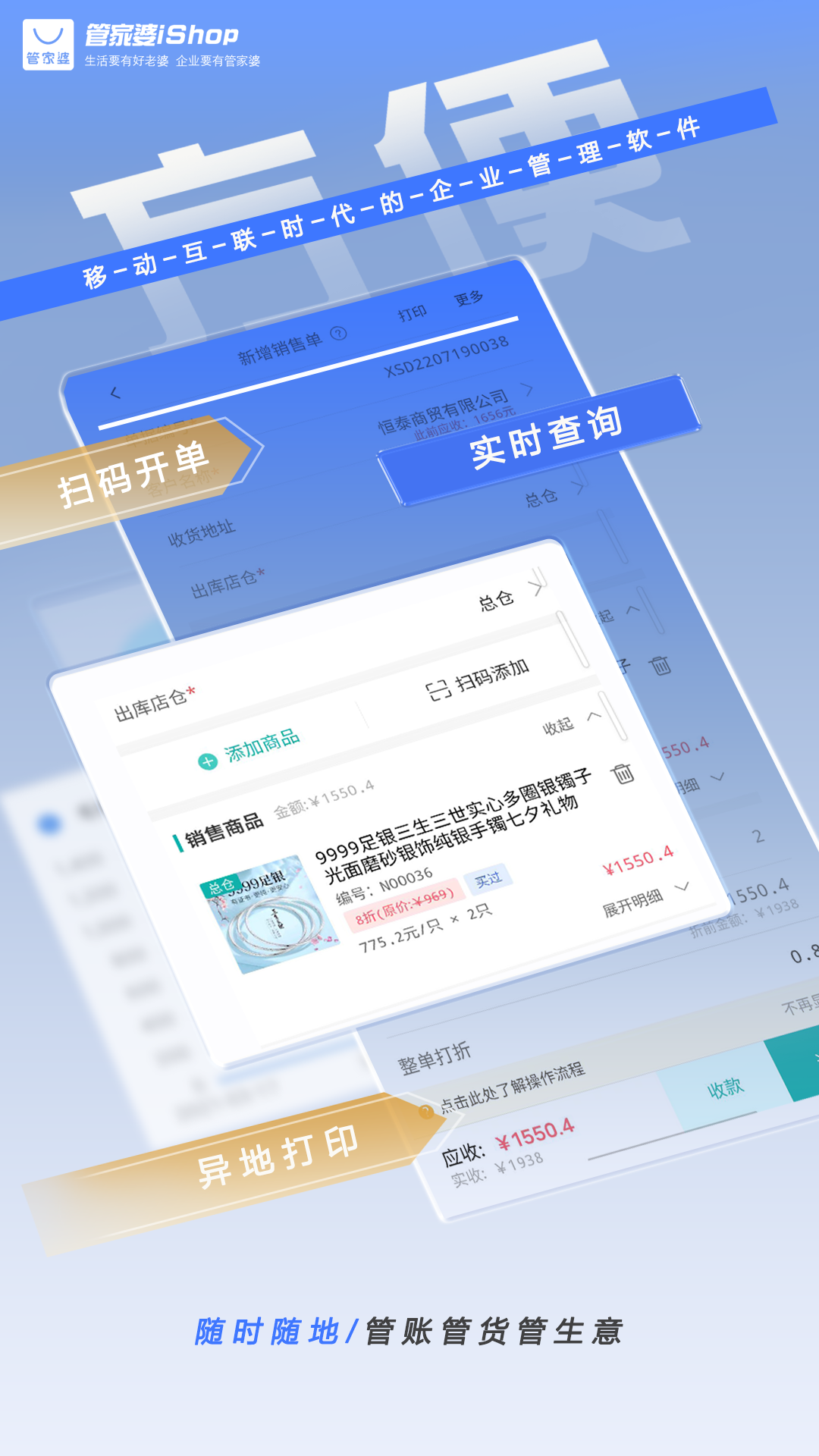 掃碼開單,實時查詢,異地打印,隨時隨地管賬管貨管生意