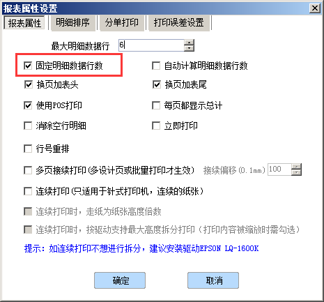 圖片中所示的最大明細行具體錄入多少,需要根據(jù)客戶實際的紙張大小來決定。通過判斷一張大概能打印多少數(shù)據(jù)去調整到最佳的行數(shù)即可。
