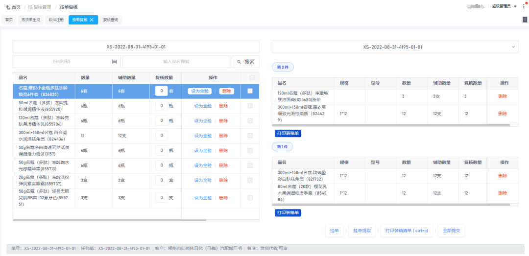 WMS系統(tǒng)提供了揀貨完成后再次復(fù)核的環(huán)節(jié),通過(guò)單據(jù)與商品條碼比對(duì)可以快速得知該揀貨商品是否為客戶所下單商品,確保出庫(kù)商品無(wú)多發(fā)、漏發(fā)、錯(cuò)發(fā)問(wèn)題的產(chǎn)生,并可以在散件商品裝箱后打印裝箱標(biāo)簽注明該項(xiàng)商品貨主。
