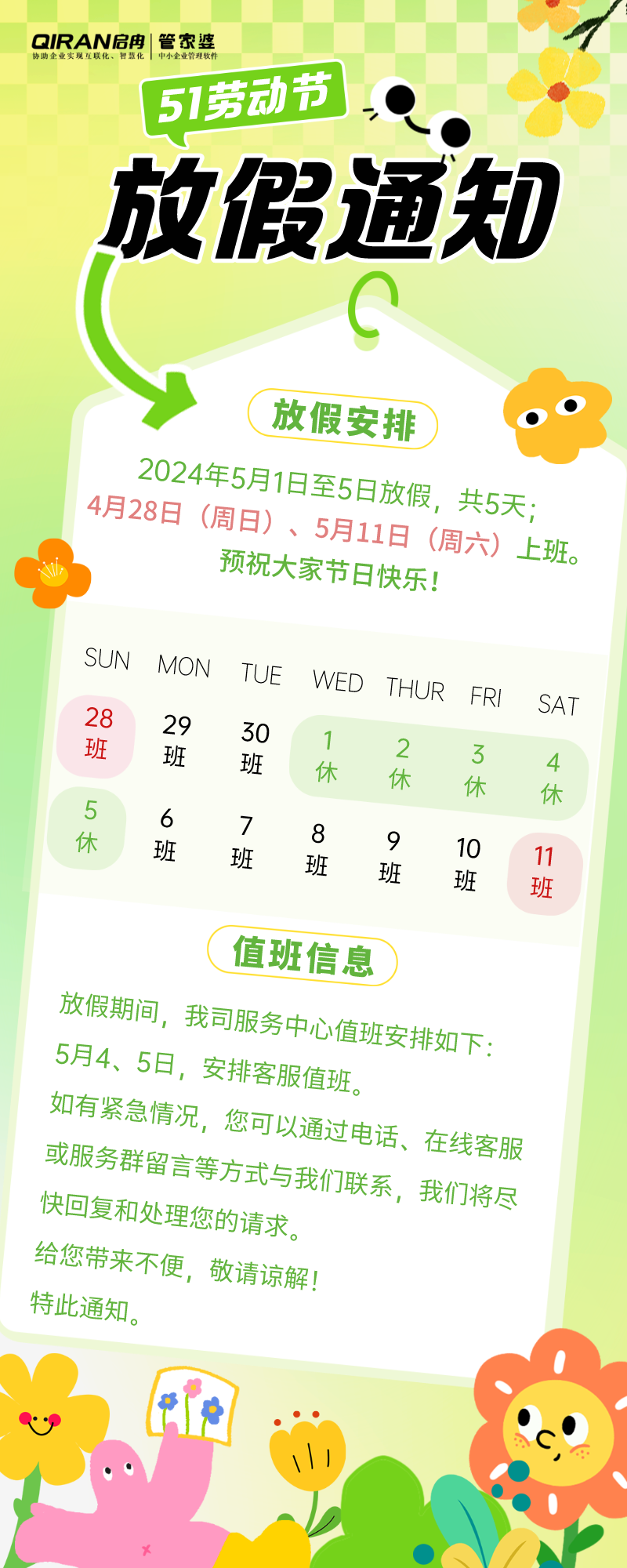 公告 | 啟冉軟件勞動(dòng)節(jié)放假通知