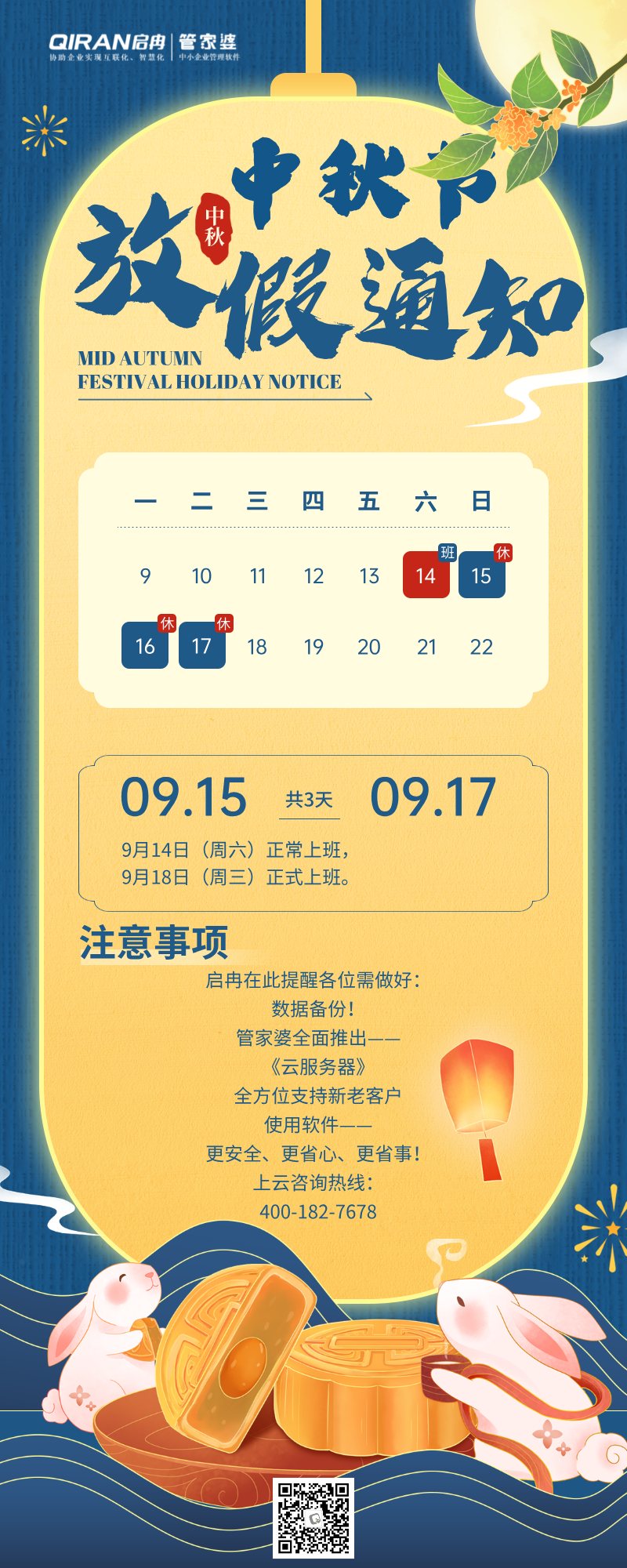 公告 | 啟冉軟件中秋節(jié)放假通知
