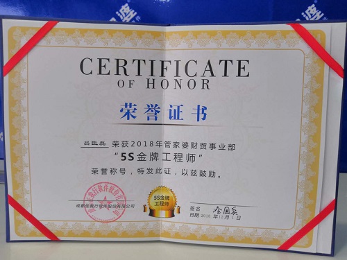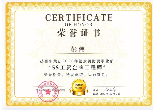 此次“5S金牌工程師”(二期)的評(píng)選,經(jīng)過多方面多層篩選把關(guān),共計(jì)在 全國 不同區(qū)域誕生 16名 品質(zhì)服務(wù)人員,恭喜我們的小伙伴:彭偉 榮獲“5S工貿(mào)金牌工程師”,這也是繼“5S金牌工程師”評(píng)選活動(dòng)以來,又一位我們的小伙伴獲得啦~