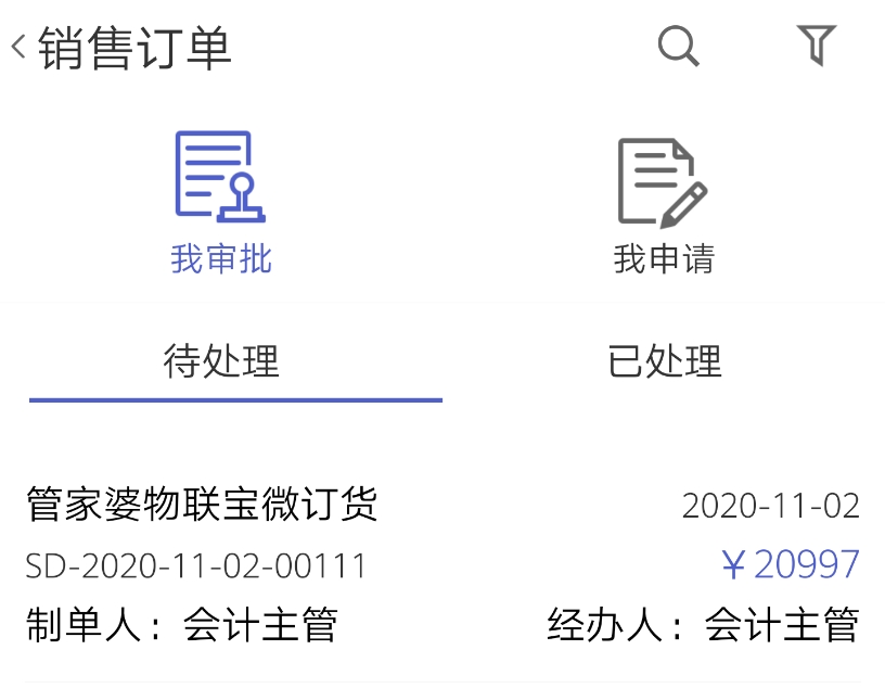 tips:轉(zhuǎn)為銷售訂單并設(shè)置審核流程后,可以將物聯(lián)寶APP作為簡易后臺,對訂單進(jìn)一步處理哦。